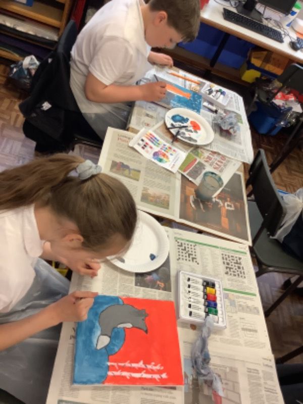 P6 and P7 really enjoyed their first lesson with Leon, using acrylic paint.