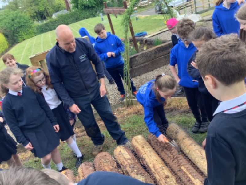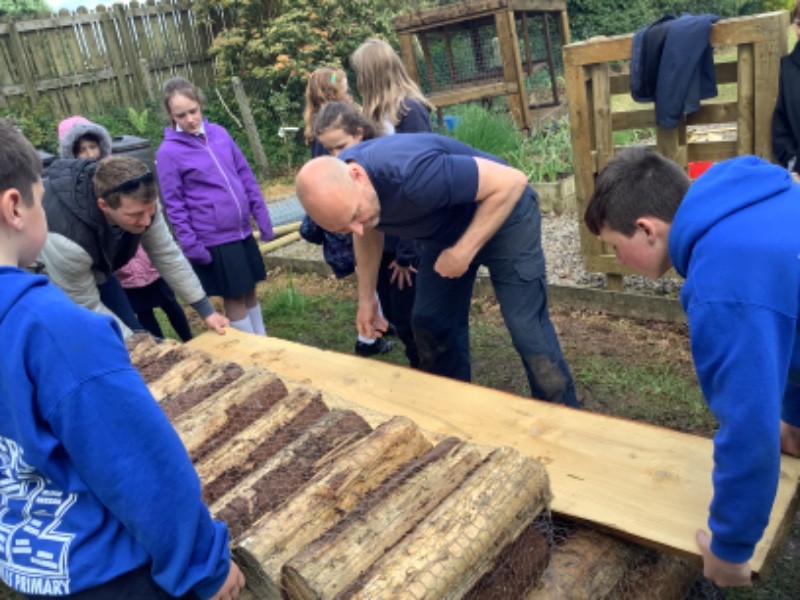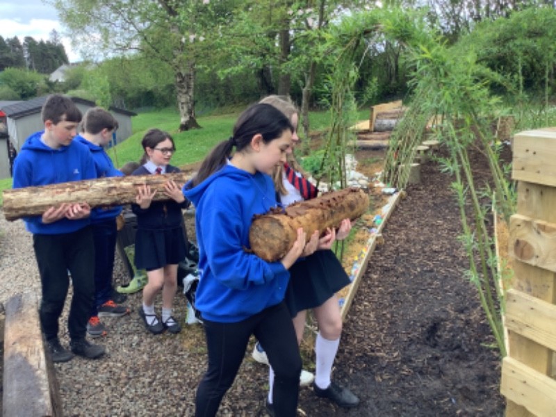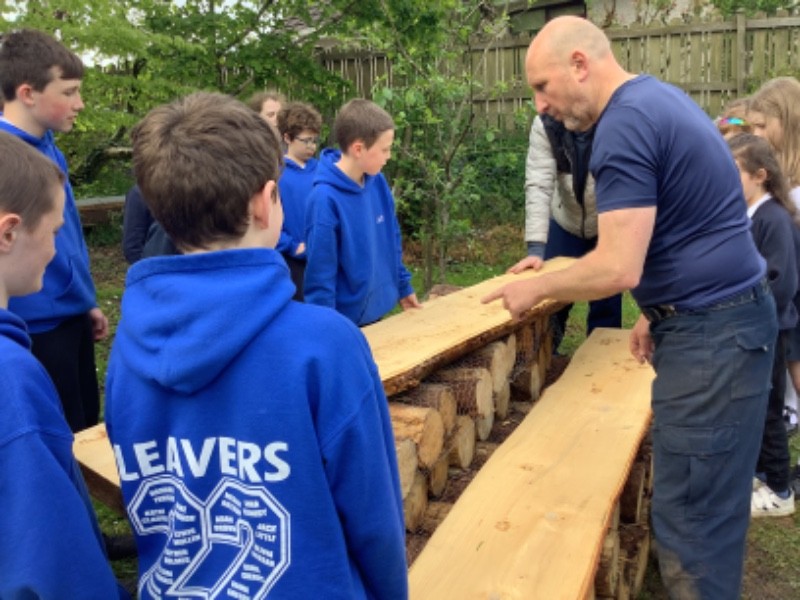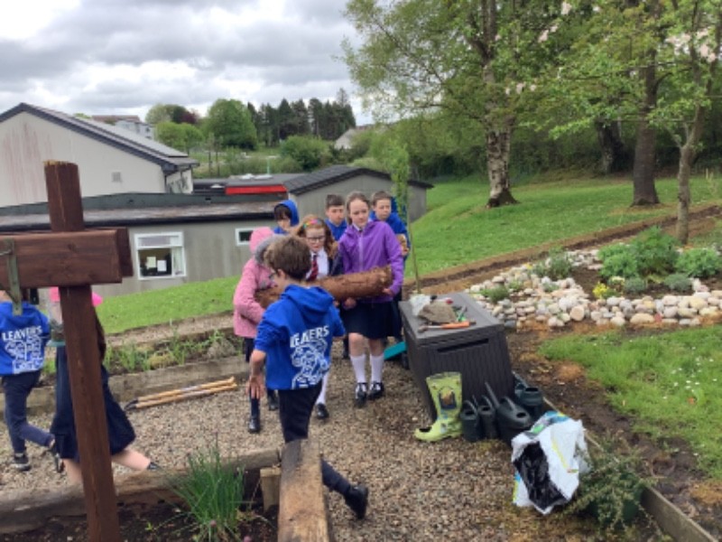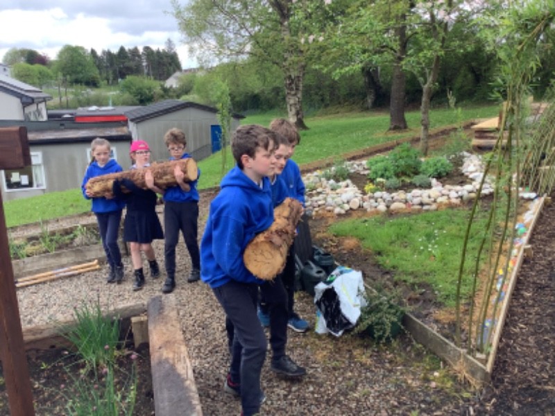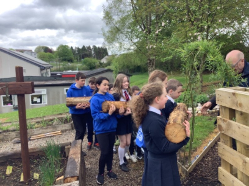 Primary Six and Seven were so excited today to be out in the school garden with Andy Griggs and friends from the local community garden group. We are thrilled with our new garden benches made from logs and had a fantastic time helping to construct them.