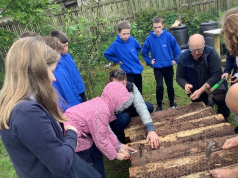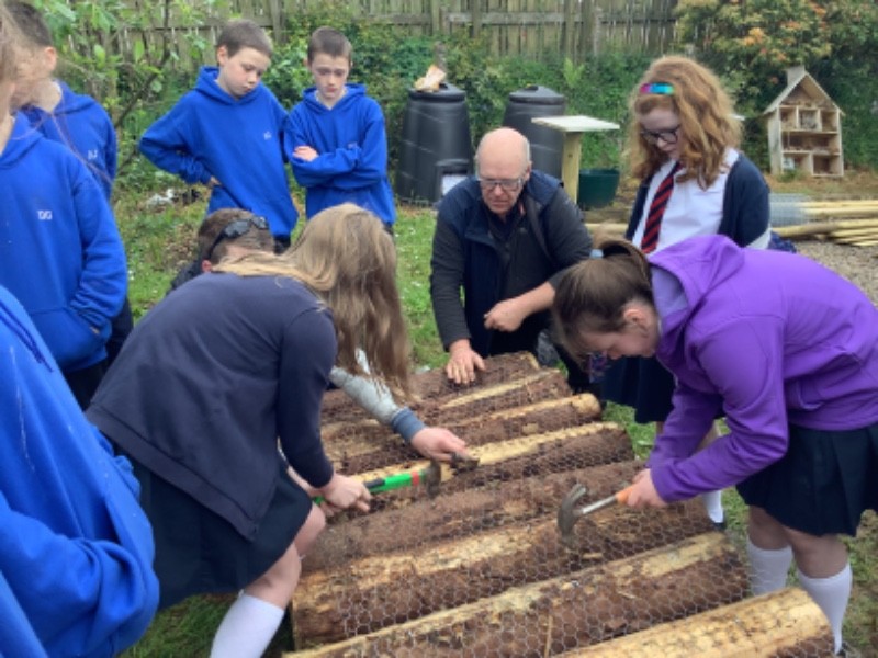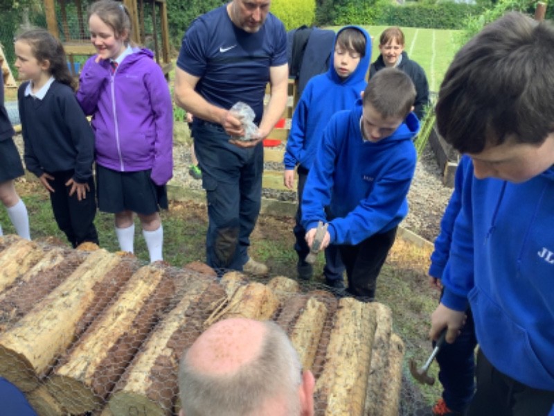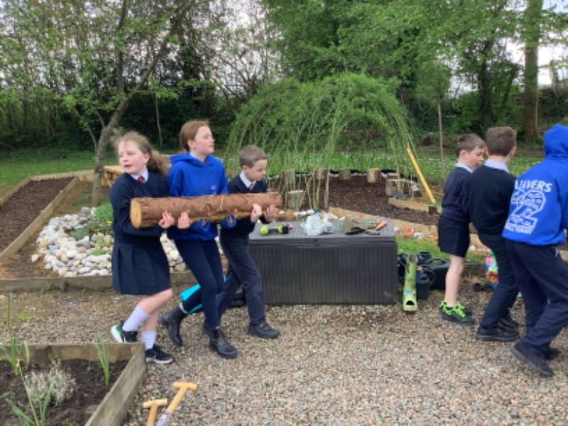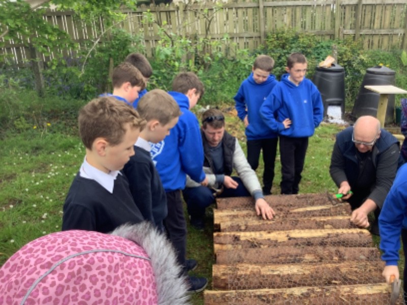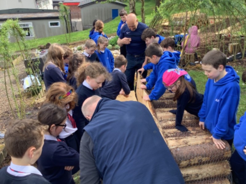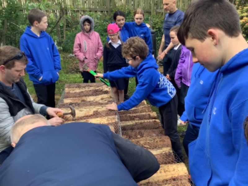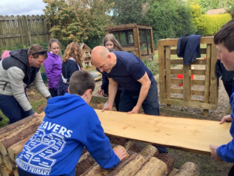 Primary Six and Seven were so excited today to be out in the school garden with Andy Griggs and friends from the local community garden group. We are thrilled with our new garden benches made from logs and had a fantastic time helping to construct them.