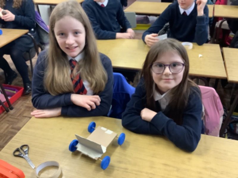 James from Sentinus joined us to deliver a workshop on the theme of moveable toys. Our pupils had the opportunity to work in pairs to create balloon powered and motor powered vehicles. After building the vehicles they were taken outside for testing and then improvements were made to try and make the vehicles travel further.